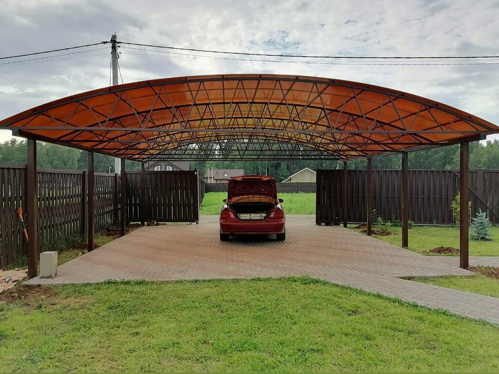 Поэтому компания "НавесСтрой" настоятельно рекомендует не экономить, а усилить каркас навеса для двух автомобилей более жёсткими профилями с увеличенной толщиной металла и количеством несущих ферм.